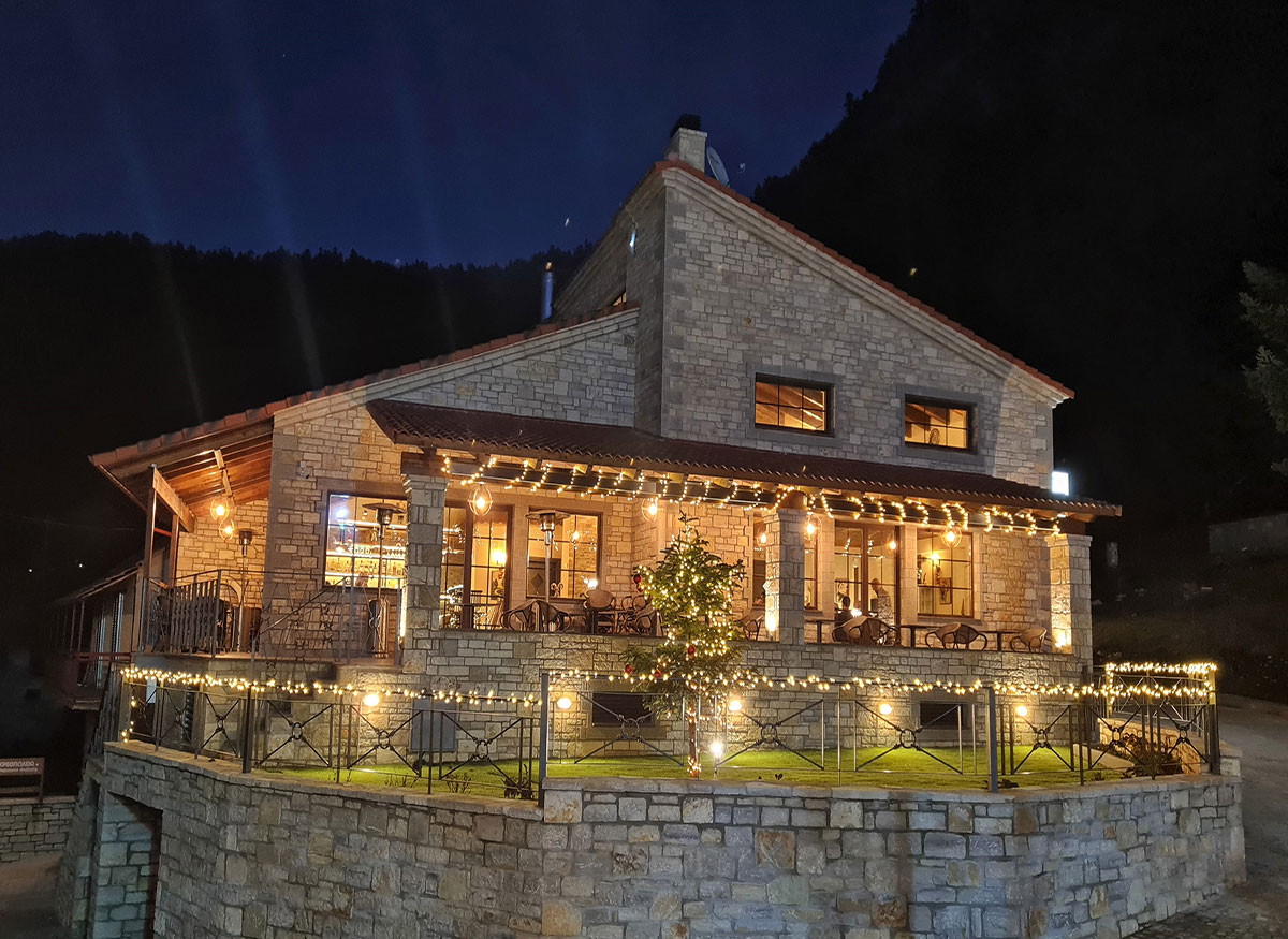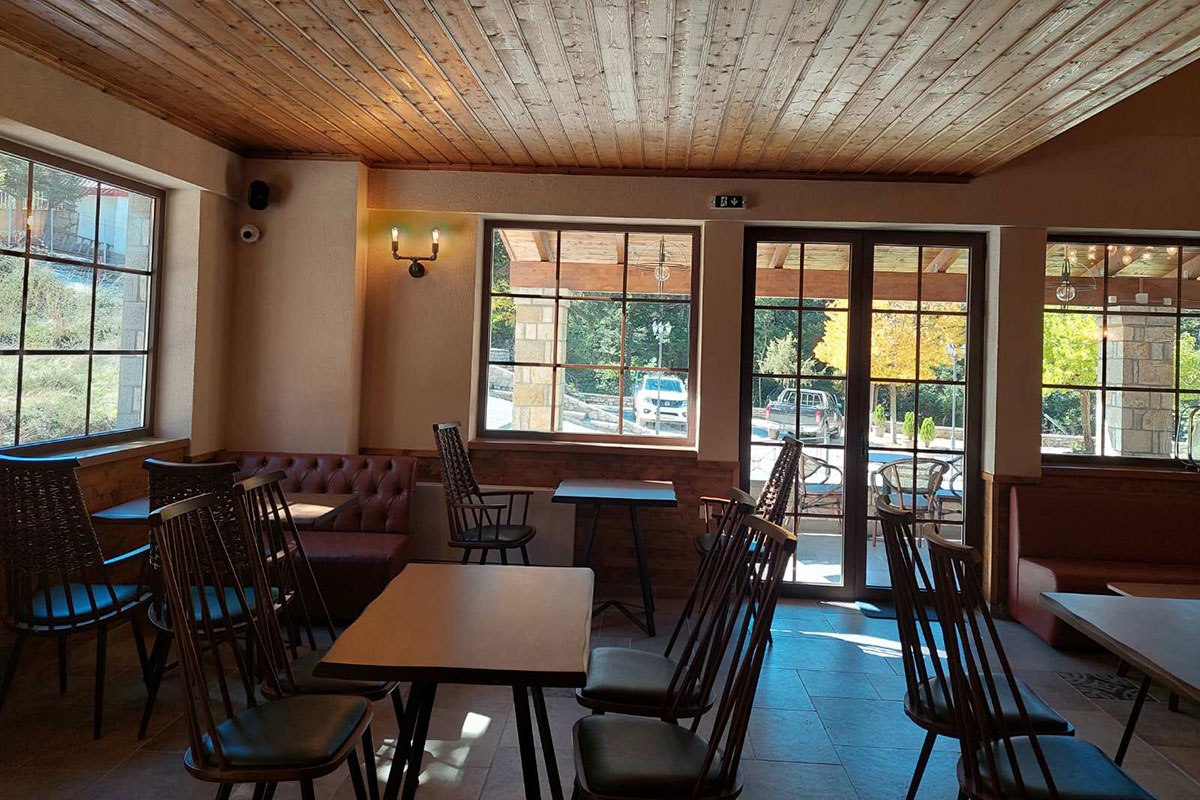 Taking the route to Mountainous Nafpaktia, through a landscape of incomparable beauty, you will come across the picturesque village of Kryoneria. There you will be welcomed by "Ntopios" who will prepare your favorite coffee for you to enjoy with a view of the fir trees, the stone-built Holy Church of Panagia, the theater and the playground.